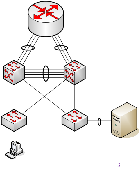 Dans le schéma ci-dessus, on a fait des agrégats un peu partout ; entre switchs, entre switch et routeur et même entre switch et serveur (très pratique pour assurer la résilience du réseau en cas de défaillance d’une carte réseau).