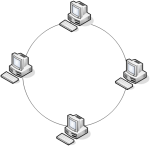 On peut schématiser physiquement une topologie en anneau comme ceci :