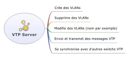 Le switch en mode Server permet à l’administrateur de faire toute modification sur les VLANs et de propager automatiquement ses modifications vers tous les switchs du réseau.