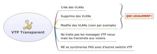 Le switch en mode Transparent permet à l’administrateur de faire toute modification sur les VLANs en local uniquement et donc ne propage pas ses modifications vers tous les switchs du réseau. Très pratique pour des maquettes !